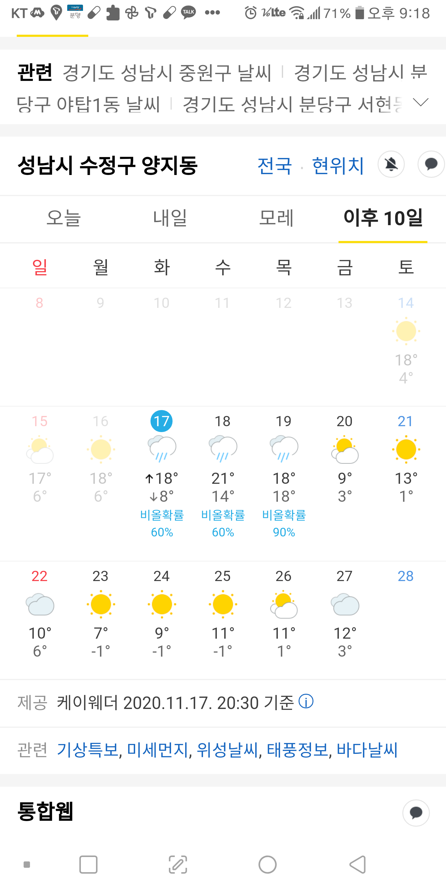 하루종일 기온변화없이 18도라니 날씨가 참 요상하네요