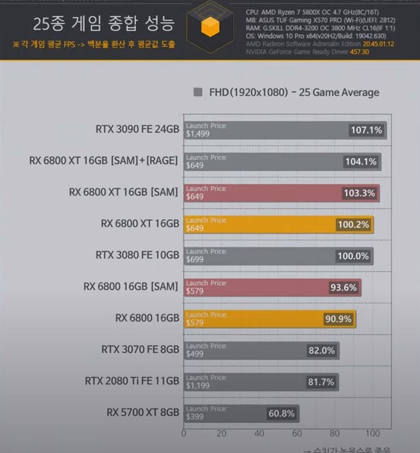 그나저나 AMD CPU와 결합한 RX 6800의 SAM 성능이 무시할 수준이 아니네요.