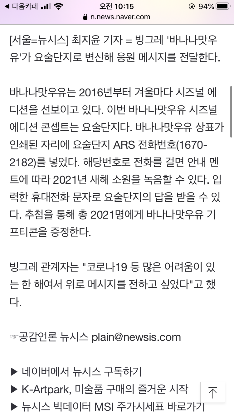 새해소원 녹음하고 바나나우유 깁티 받는이벤트