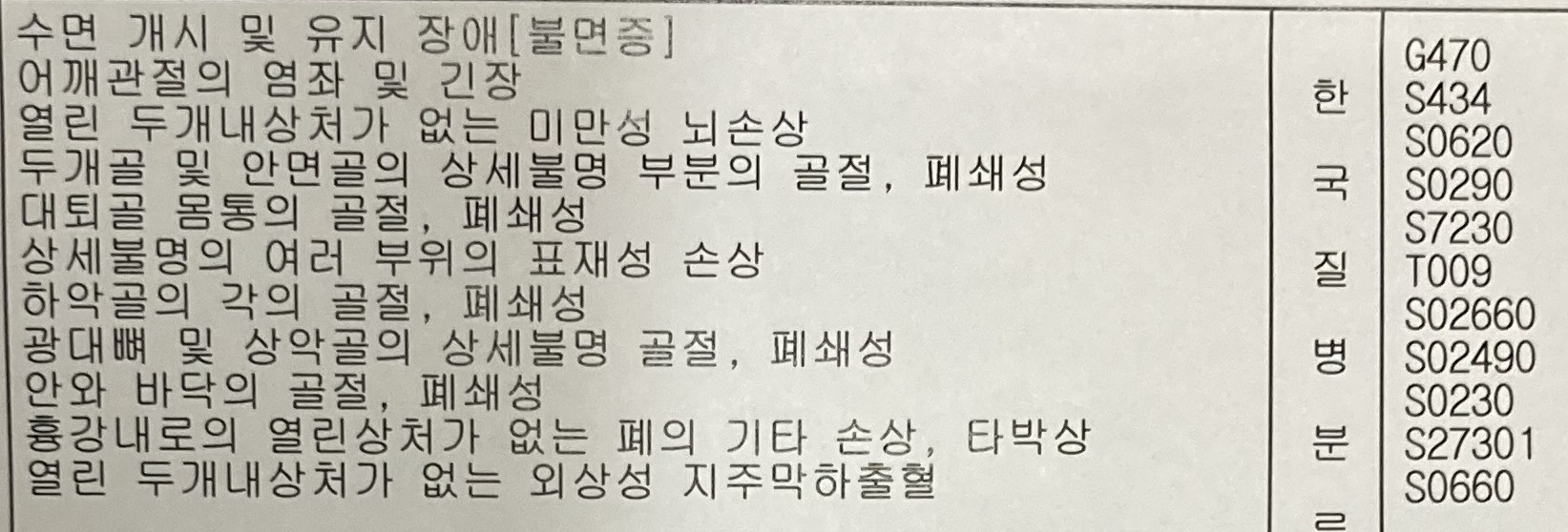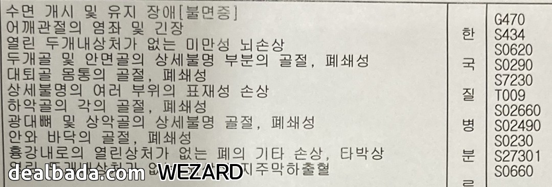 골절만 8군데인데 그중 6군데가 머리랑 얼굴 ;;; (폐의 기타 손상 ,타박상 요건 갈비뼈 골절로 생긴 타박상인데 갈비뼈 골절은 진단서에 빠졌 ㅡㅡ)