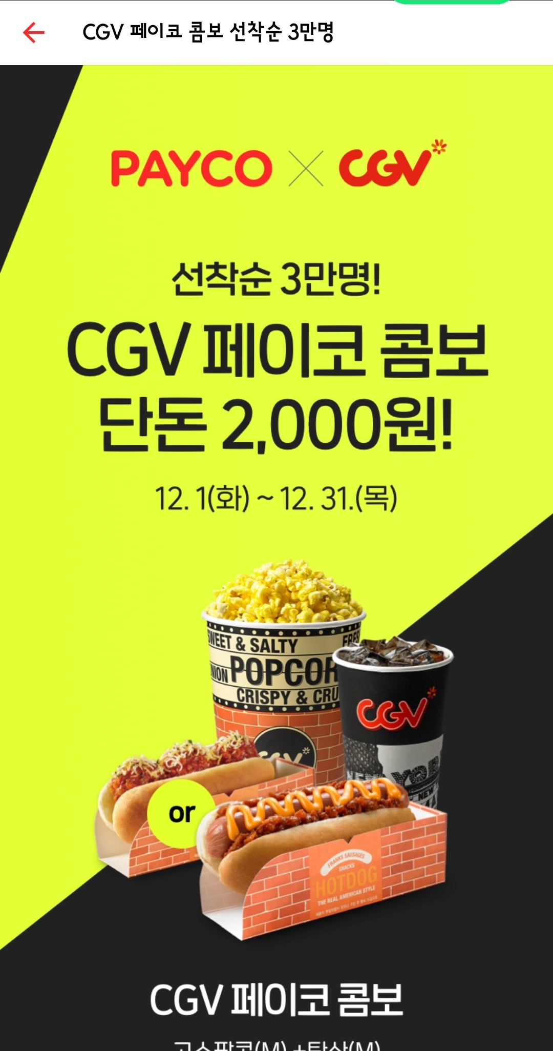 페이코앱에서 cgv검색 하시면 나옵니다 |