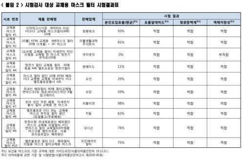 소보원"교체용 마스크 필터, 상당수 제품이 성능·품질을 허위·과장광고 하고 있어"