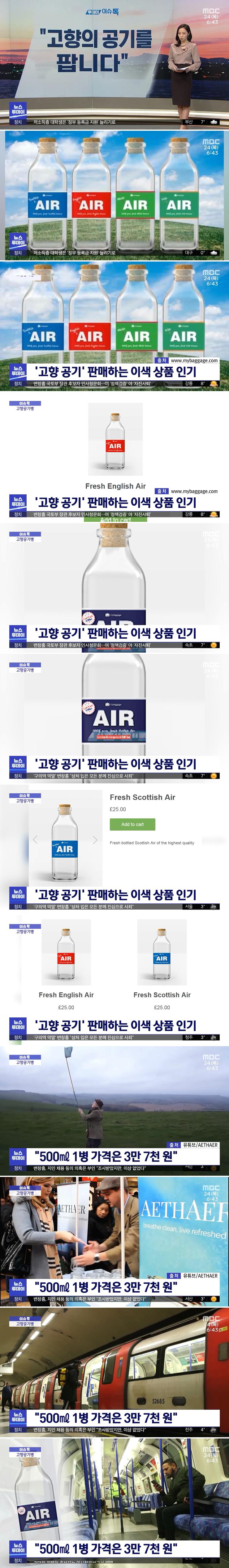 영국의 한 화물 회사가 고향의 공기를 병에 담아 상품으로 출시했다는데요.