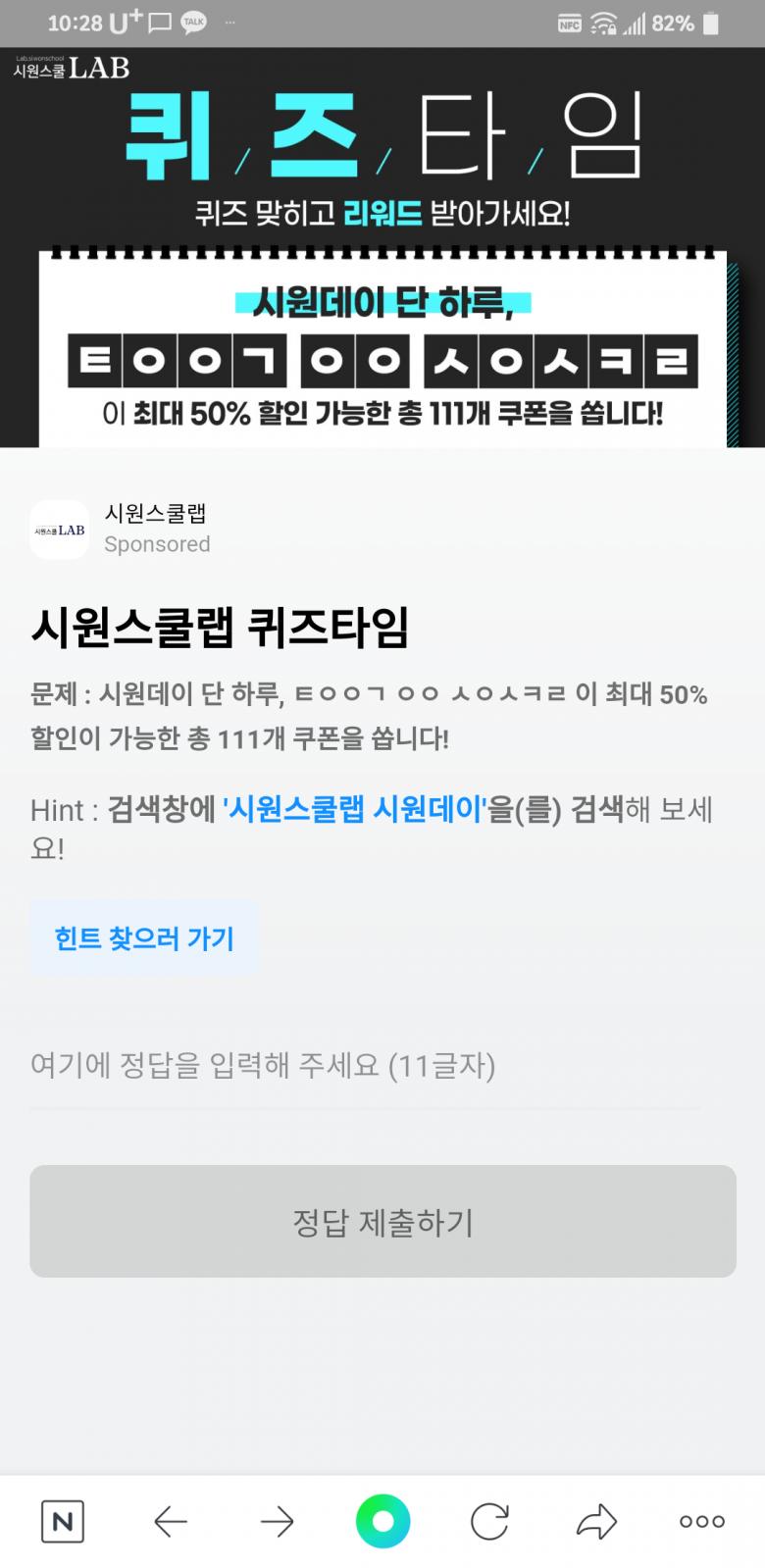 (이 퀴즈는 유지 시간이 짧은 듯 합니다. 계속 지켜보니 1시간 내로 없어지는 것 같음)