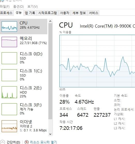 뭔가 평소보다 밀리는 느낌도 들고 해서 보니 메모리를 꽤 먹고 있는데