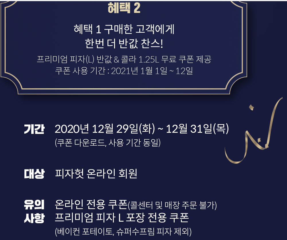 올해까지 쓸 수 있는 <혜택1> 이벤트는 L사이즈 반값할인 쿠폰이구 (+콜라제공 가능)