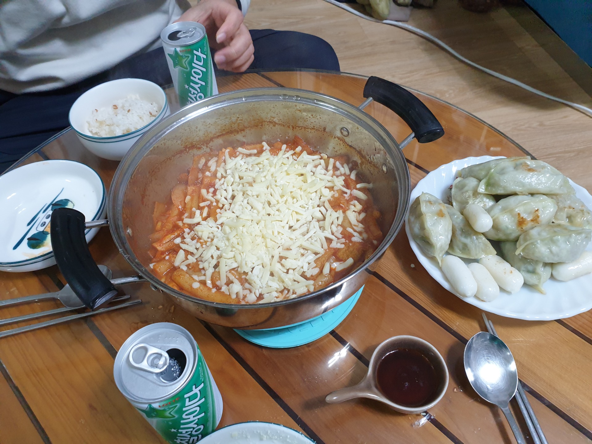 오우~푸짐합니다.^^ 역시 치즈가 많아야 맛나죠~옆에 만두랑 떡도...비쥬얼이.ㅋ |