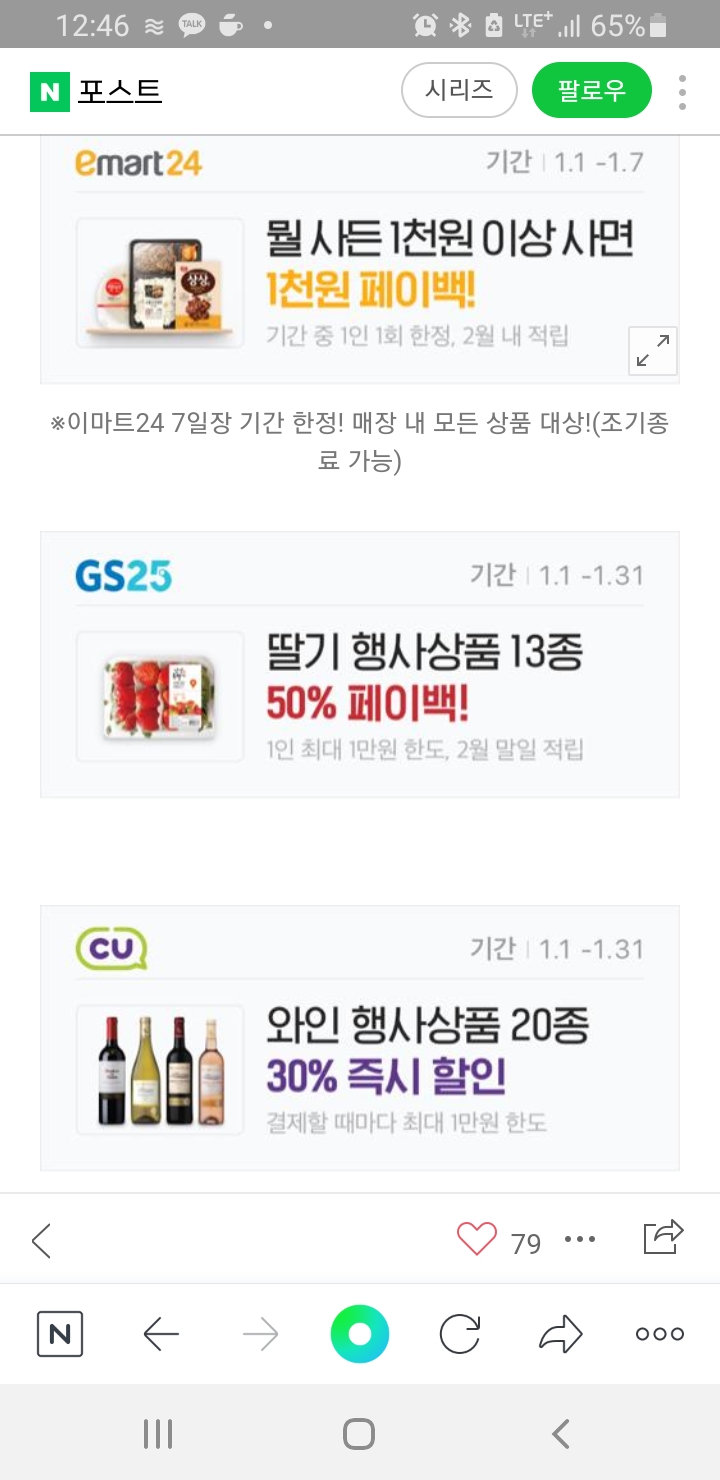 이마트24 1월1~7일 1천이상 1천적립 네이버 이벤트 좋네요 |