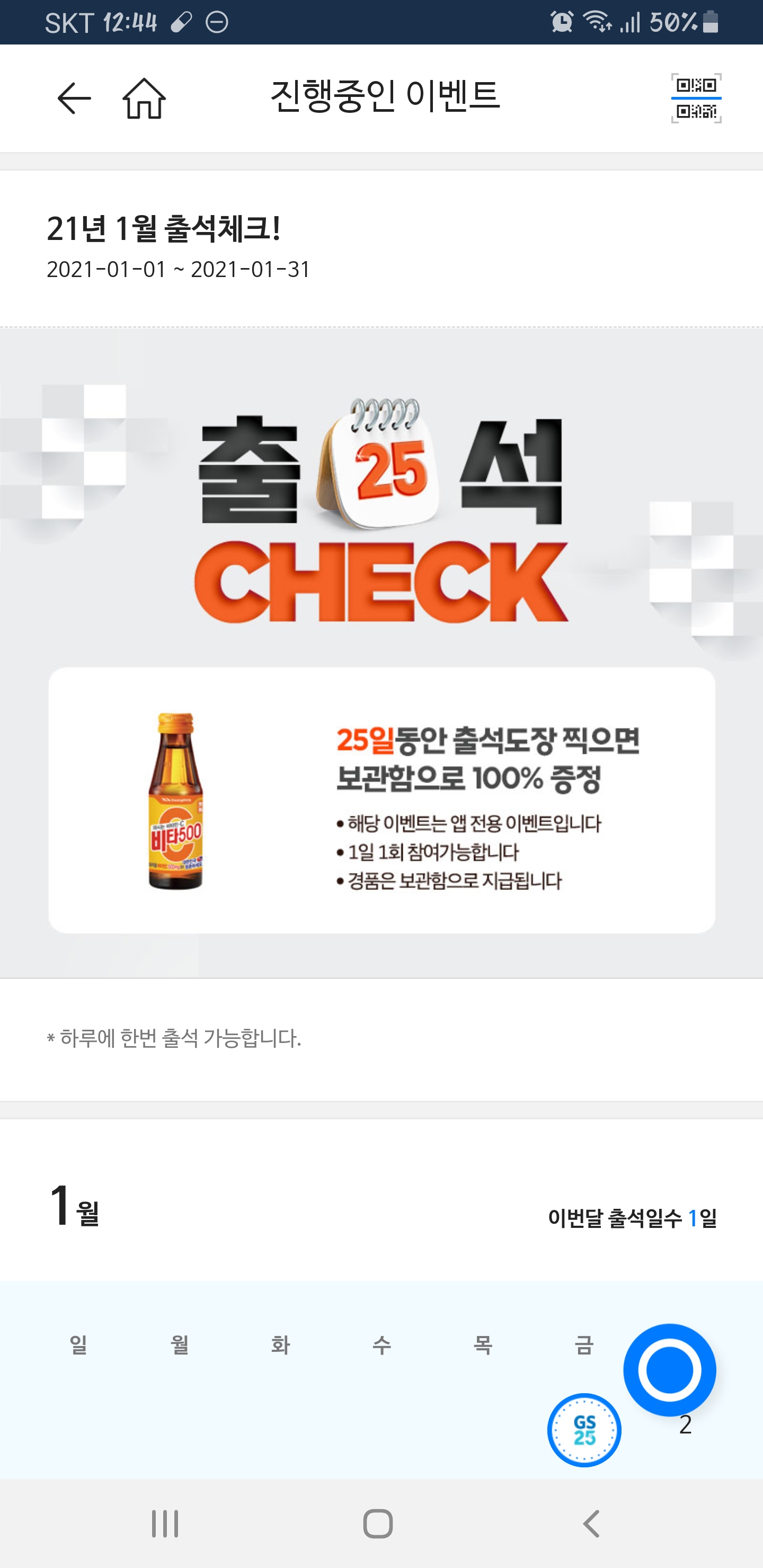 새해 첫 출첵 상품은 비타오백이네요^^