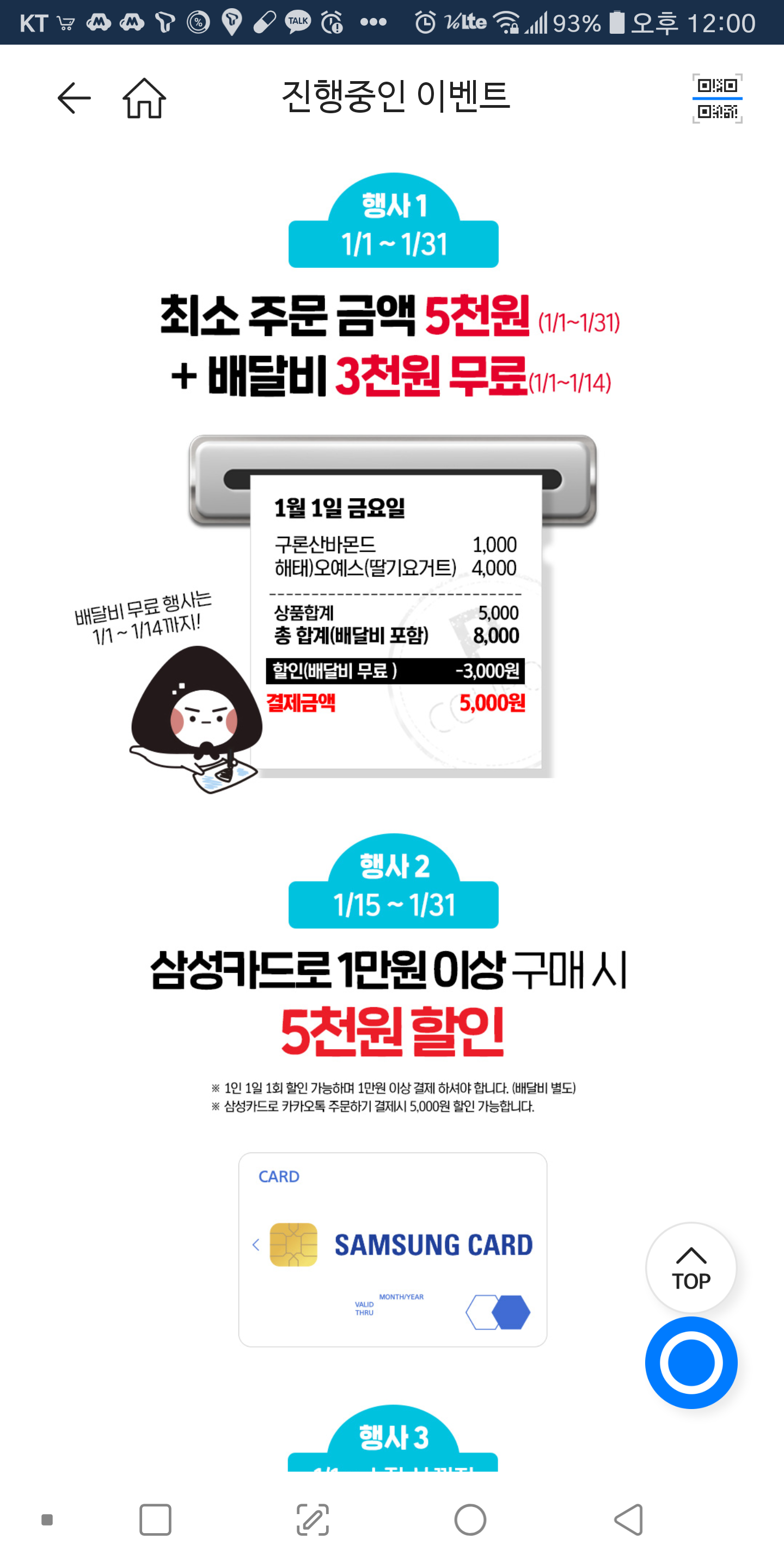 카카오톡 주문하기에서 gs편의점 배송비 할인에 삼성카드 할인 행사하고 있네요