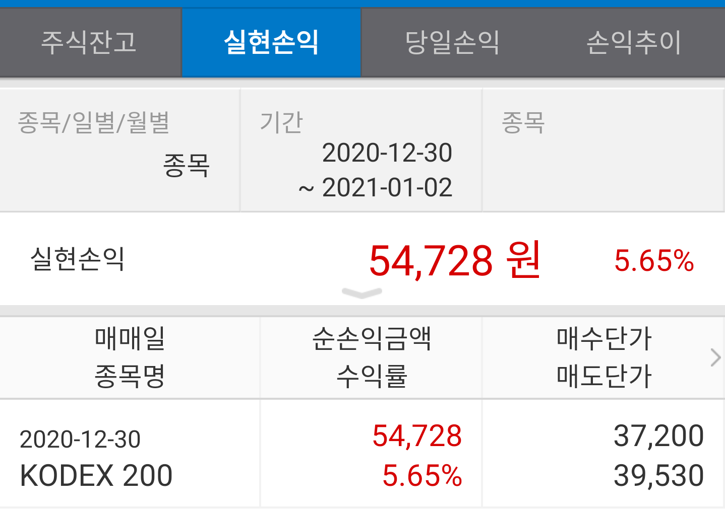 연말에 한번 사보라고 해서 ETF를 100만원 정도 사봤는데 일주일새 꽤 올랐네요. 연말 마지막 장 마감 기념으로 매도하고 수익 실현까지 했습니다.