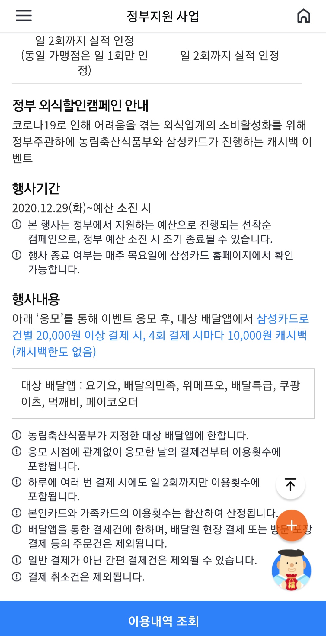 G마켓입점한 요기요도 해당되는군요!! 그동안 배달은 스마일페이나 페이코로 거의결제했었는데 적용안될까봐 그냥 카드번호 입력해서 결제했네요ㅜ 적용되는 페이(간편결ㅈㅔ)류에 뭐가 있는지 저두 궁금하네유 |