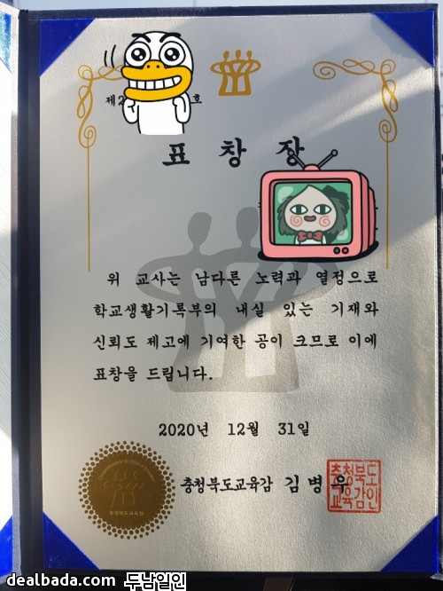 오오 심지어 교육감 표창이라니 고생하신 공로를 인정 받았네요 ㅎㅎ