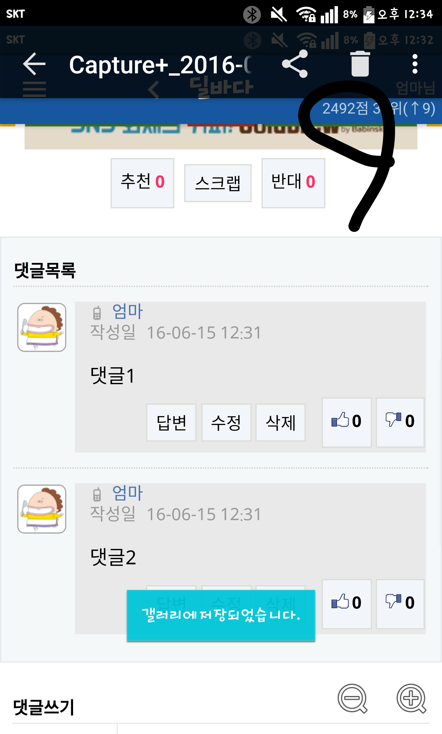 댓글 포인트도 같이 날아갑니다