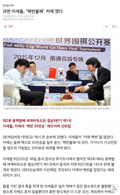 이창호는 안나오지 않았나요? 일단 결승은 이세돌~~~