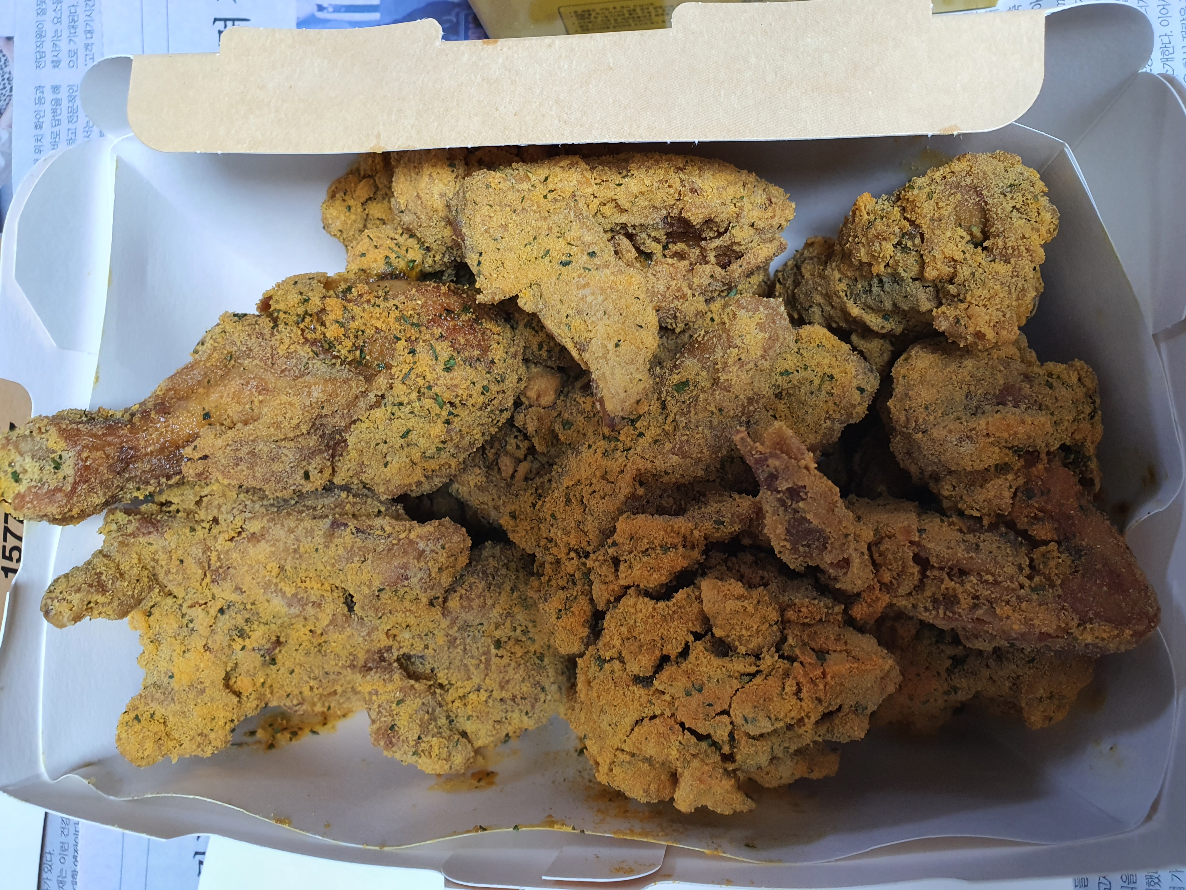 소스 묻어 있는 치킨인데.. 어린 애들은 좋아한다네요.