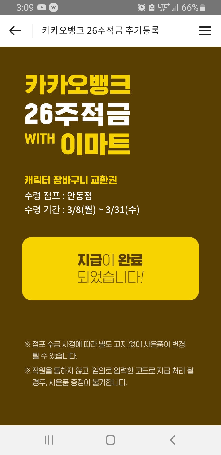감사합니다^^!! 카톡적금 당첨이예요. | ||
