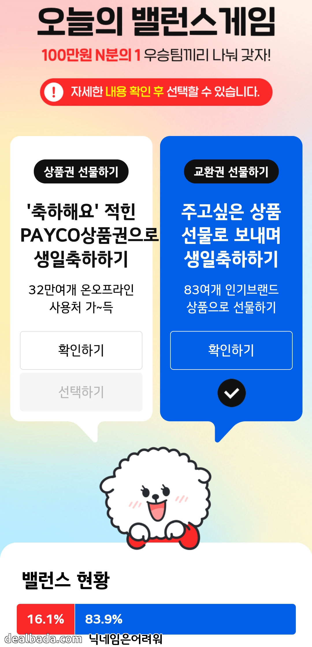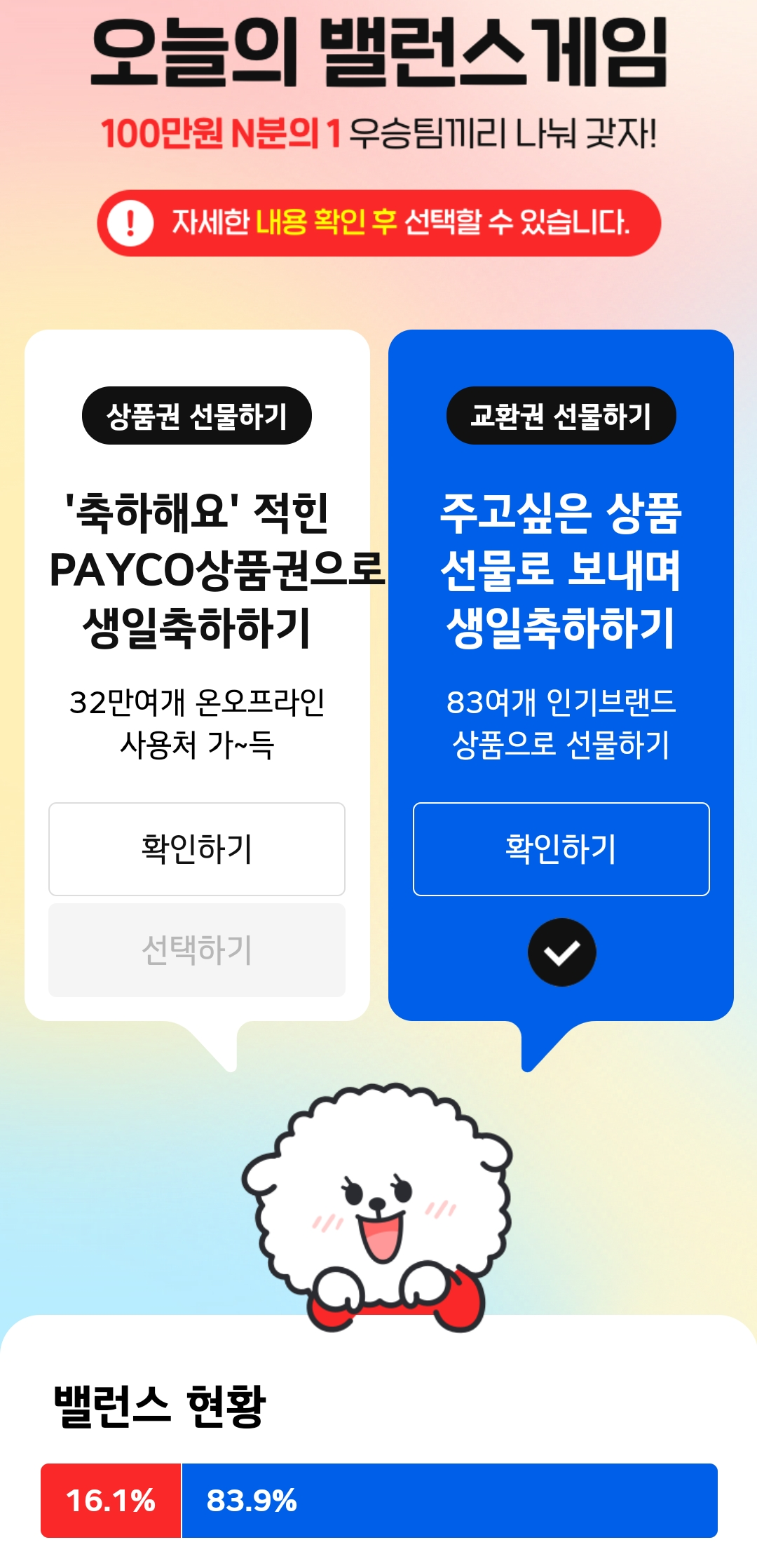 페이코를 안쓰는 사람도 있으니 아무래도 교환권이 낫지 싶습니다.