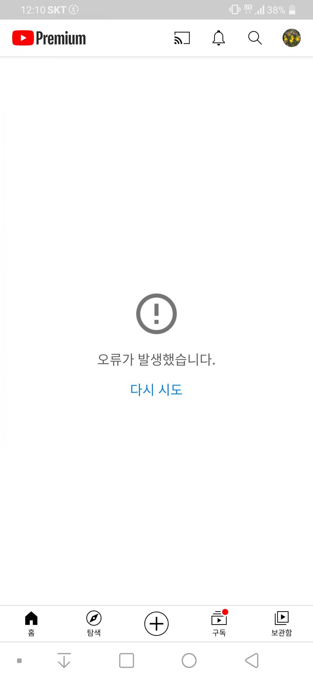 휴일이라서 유튭 잘 보고 있었는데 좀전부터 재생이 멈추거나 느려지더니 결국 이렇게 뜨네요..