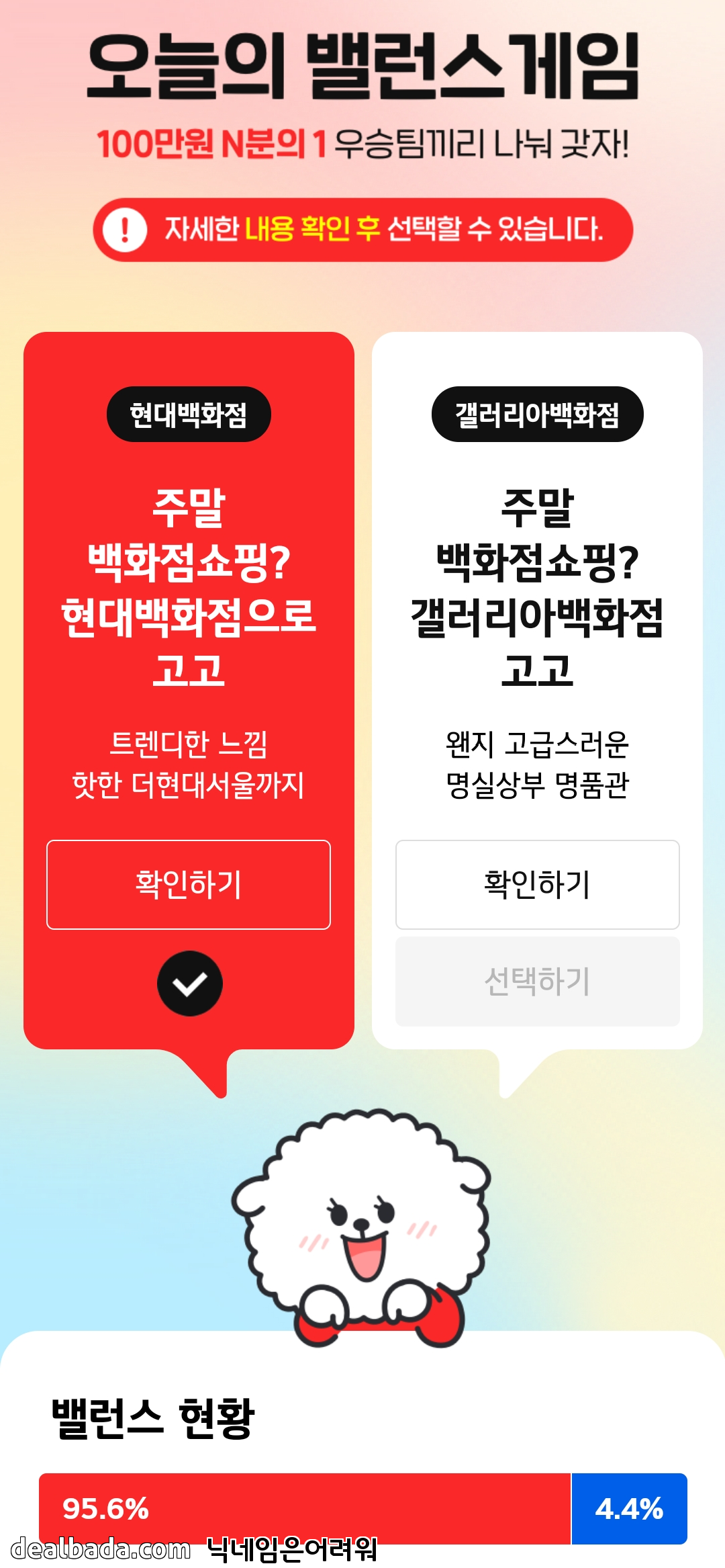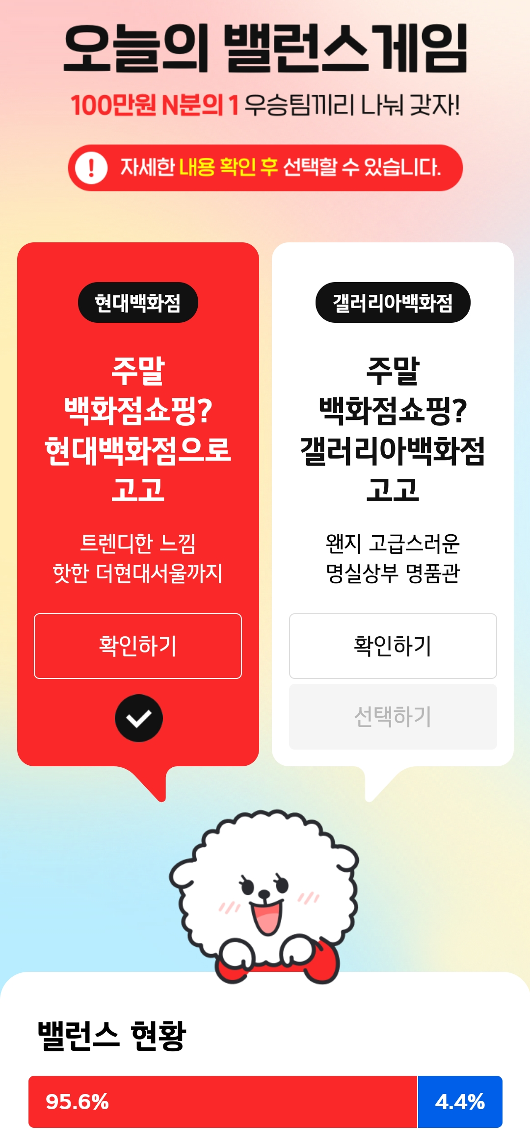 5월 21일 페이코 밸런스게임 현황 빨강 우세입니다.