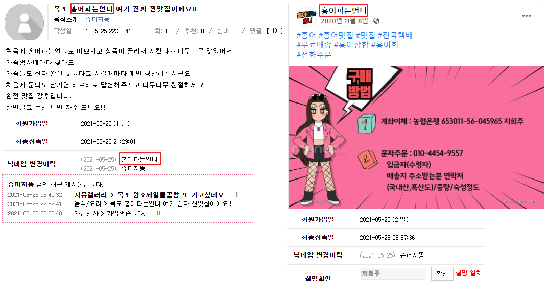 하필 전 닉네임이 상호명인데 오늘 전닉 지우고 나타납니다