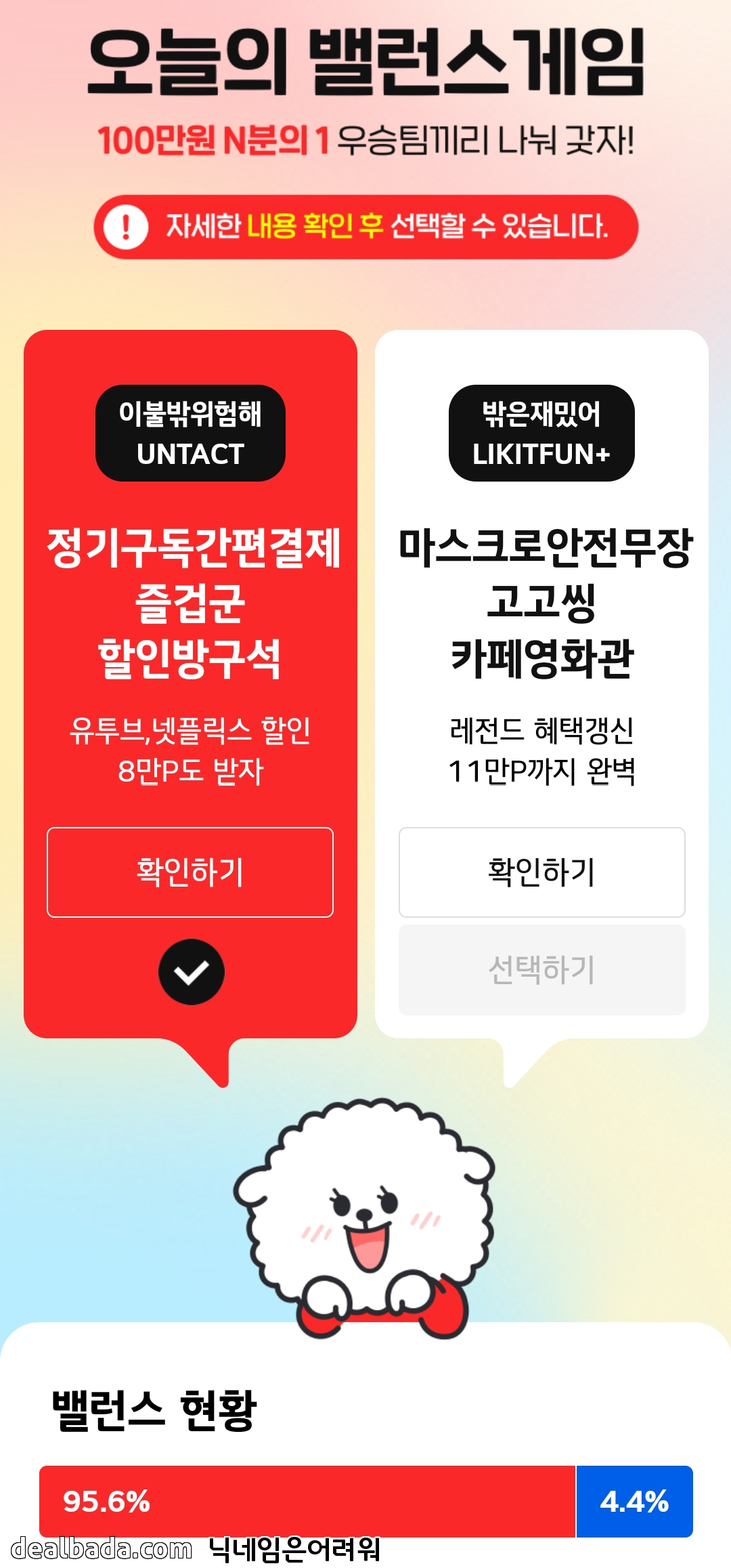 5월 27일 페이코 밸런스게임 현황 빨강 우세입니다.