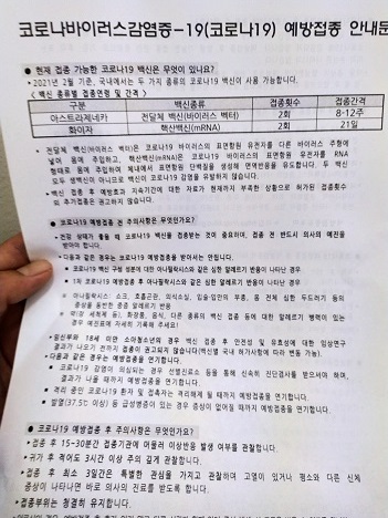 30분 대기후 의사분과 면담및 주의사항 듣고 바로 접종실에서 접종하고 안내문 받고.
