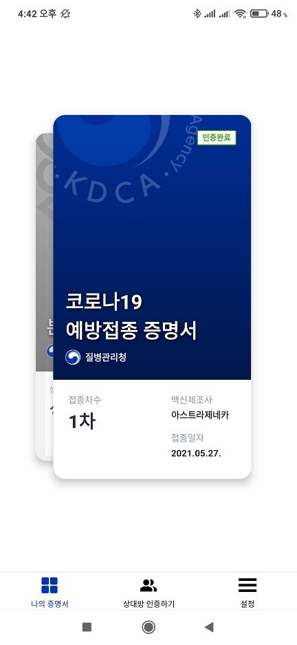 15분 휴식(?)후 귀가했고, 예방접종 증명서도 1시간도 안되서 발행 됐습니다.