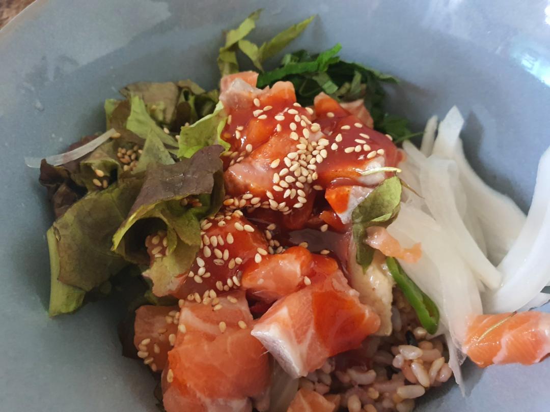 점심으로 어제 남은 연어회덮밥과 김치전 했네요.