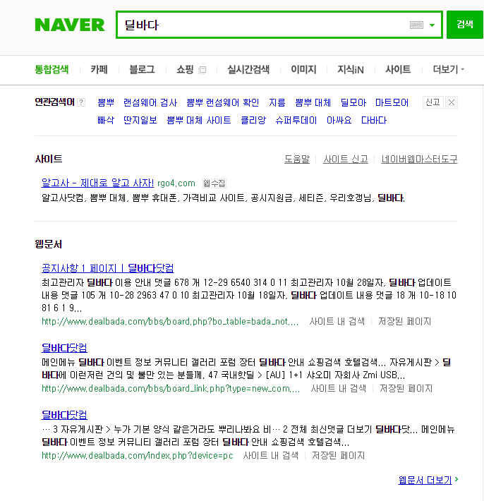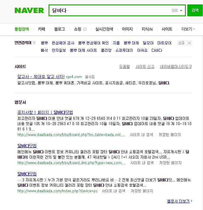 딜바다닷컴도 웹문서로만 검색이됩니다.