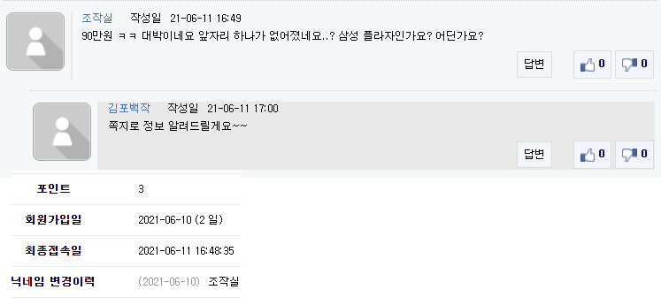 어제 가입한 사람이 로그인 30초만에 저글을 찾아 댓글을 다는건 덤