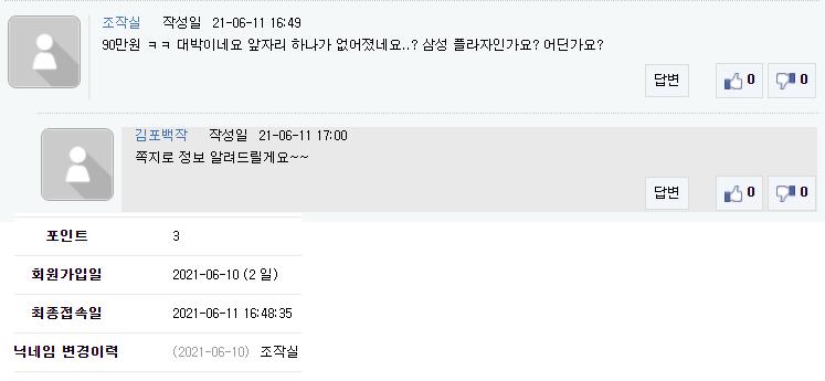 김포백작은 삼성 발안점 올렸다 지웠고 가징가징도 뜬금없이 나타나 영수증 인증하는데