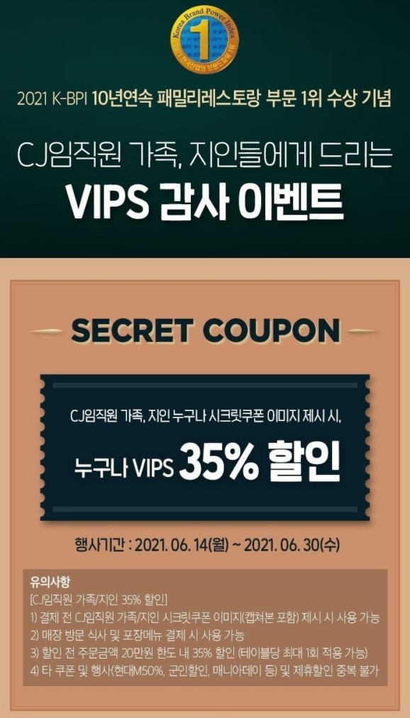 빕스 35%할인 30일까지 입니다. > 자유게시판