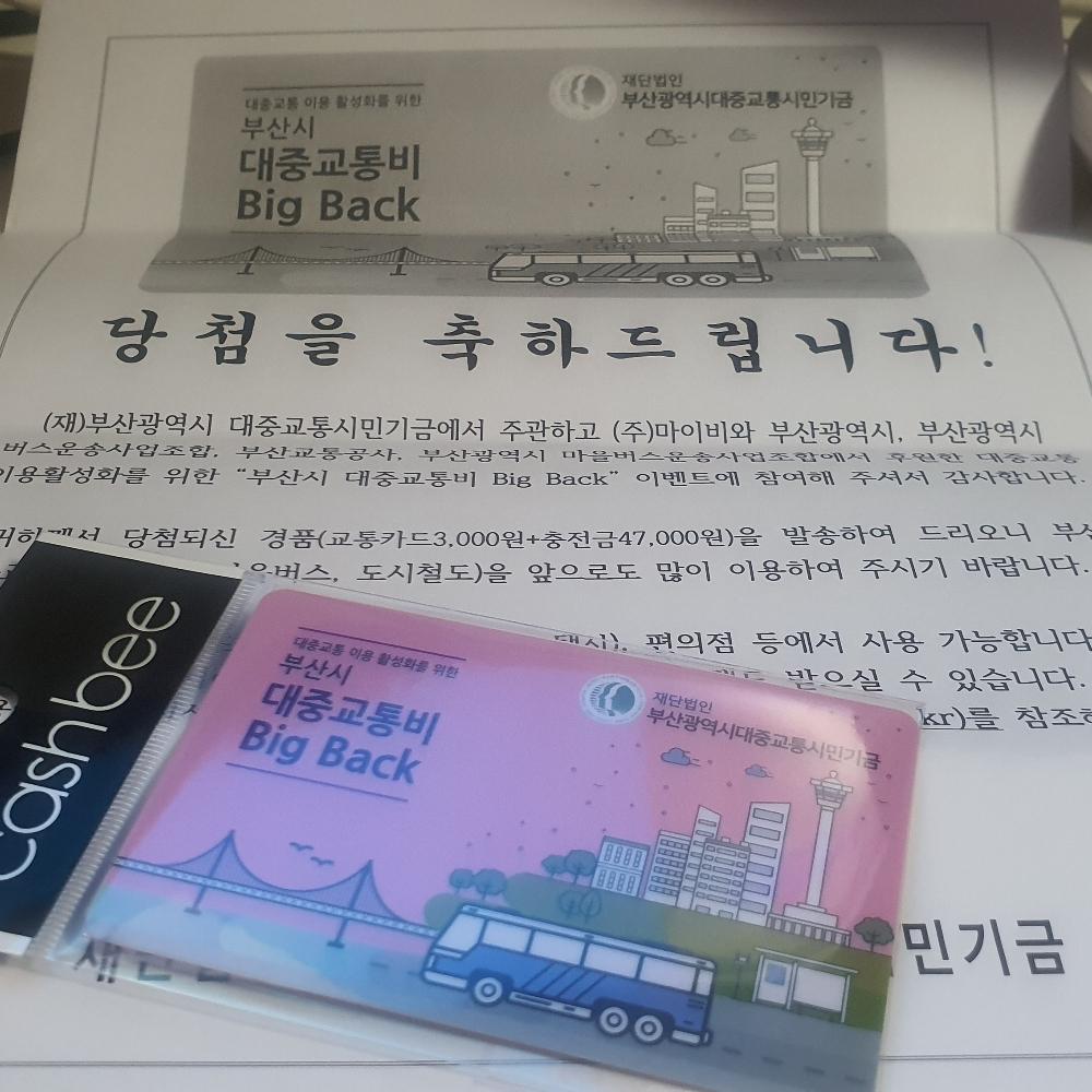 부산에 교통카드를 연초에 등록하면 1년동안 이용자 추첨을 통해 5만원 상당(카드비3천원포함)의 교통카드를 주는데