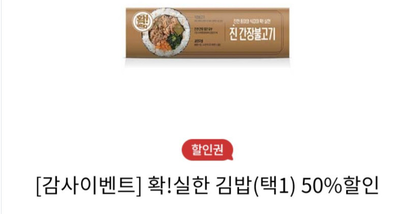 종료]]] CU 김밥 50% 할인권 나눔 [ 내일까지 ] > 자유게시판