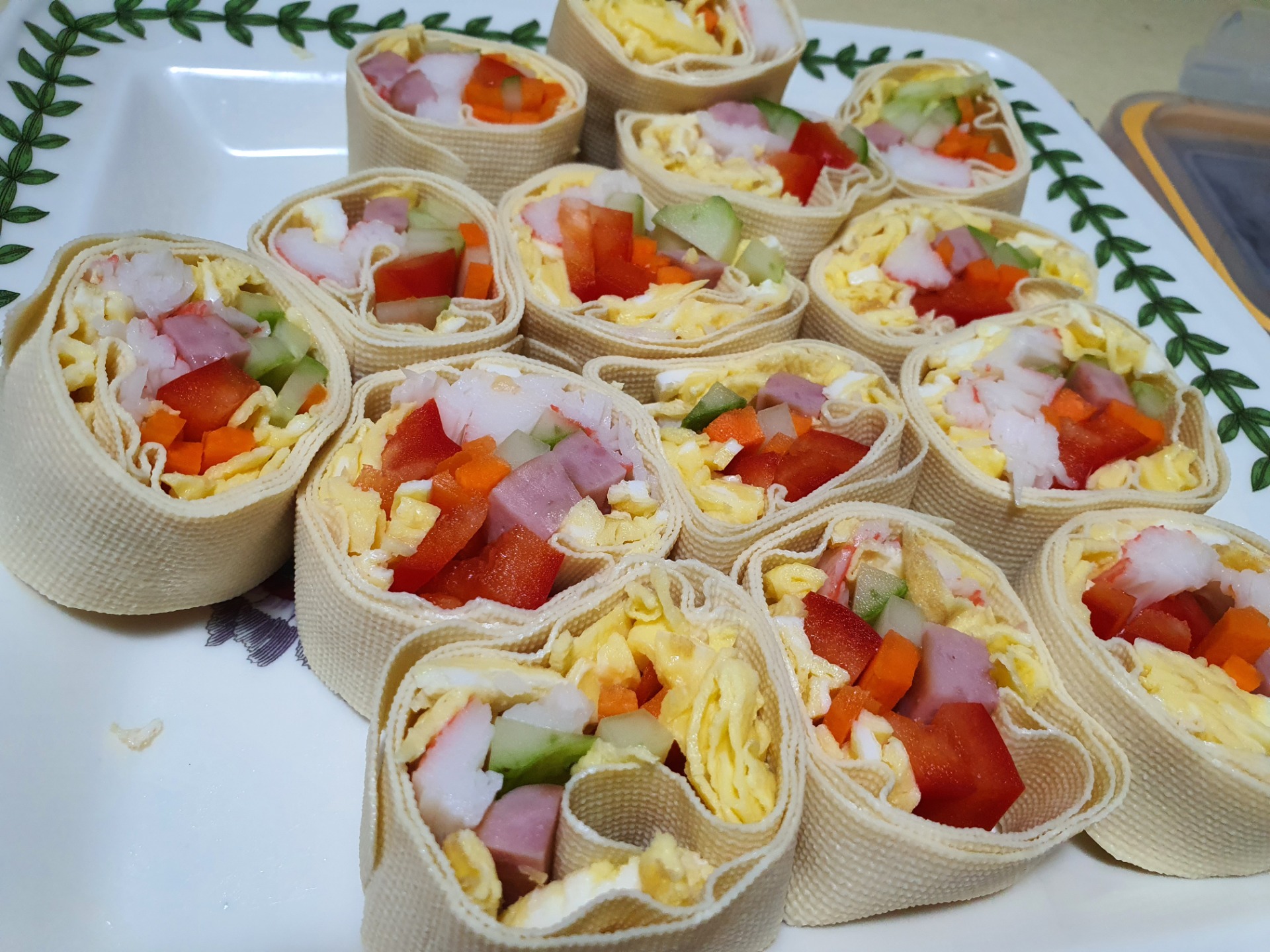 생각보다 어렵진 않더라고요..포두부가 길어서요..계속 말면 되거든요~^^