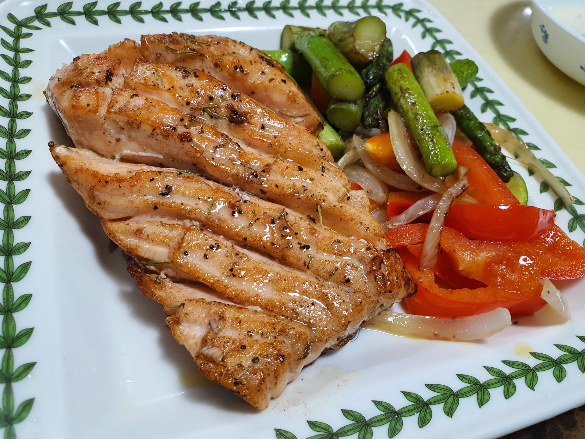 작은애가 티비보다가 연어스테이크 먹는걸 보더니 자기도 먹고 싶다하여 어제 마트에서 연어랑 파프리카 아스파라거스 사다가 올리브오일 넣고 구웠네요..원래는 그린빈스 사고 싶었는데 품절이라 아스파라거스로 사왔네요.