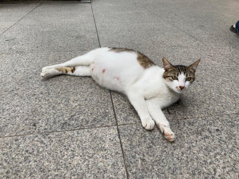 어제 금산쪽의 고속도로 휴게소에서 화장실 가는 길에 임신한 냥이가 한가운데에 대놓고 누워있네요
