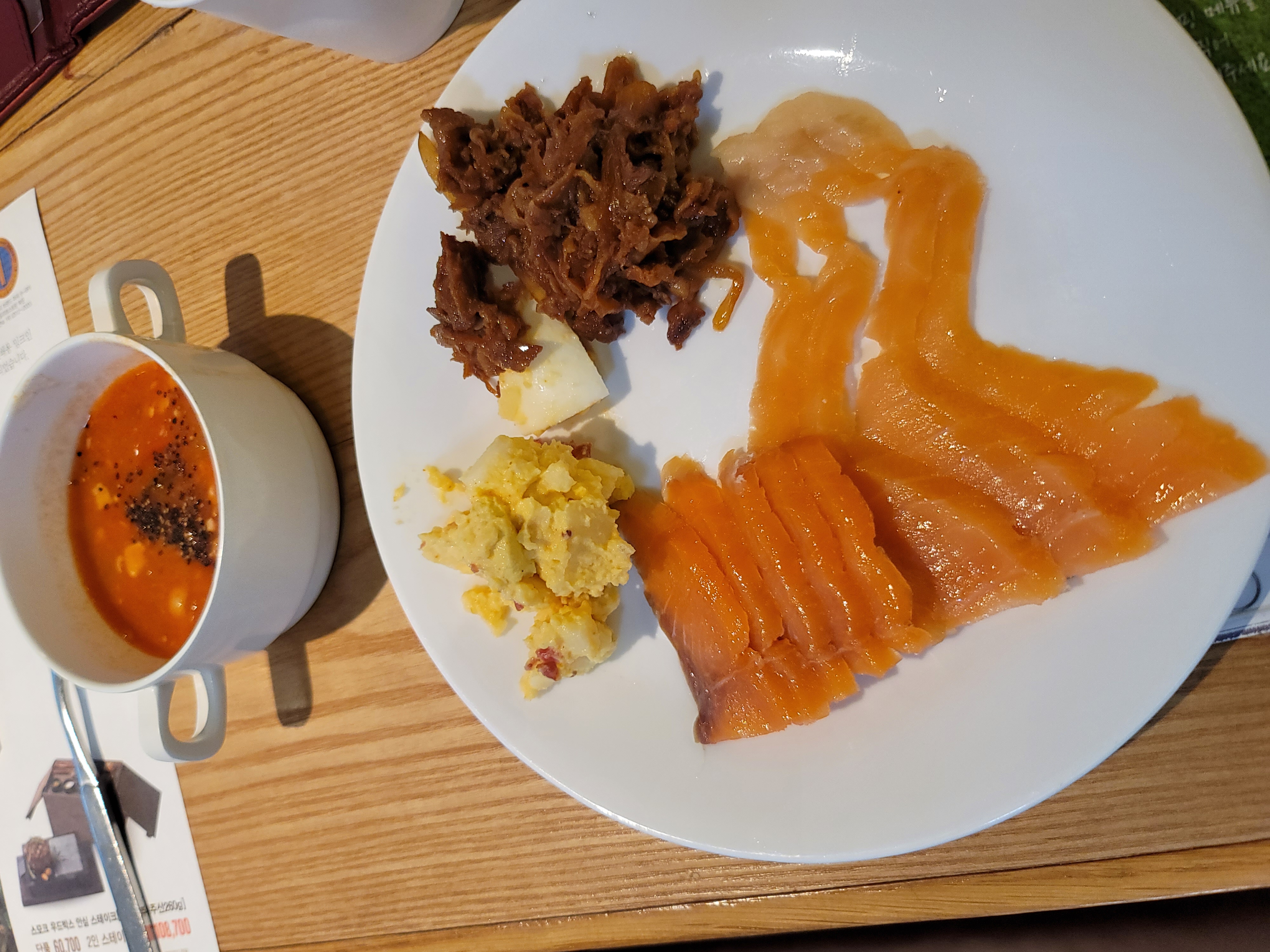 그 후 아무 자리에 앉고 얌스톤 안심정식을(런치적용받아서 샐러드 바까지 합친금액 53,000원)시키고 샐러드 바를 이용하였네요. 근데 예전보다 종류나 구성수가 약간 줄은 느낌이 나네요...