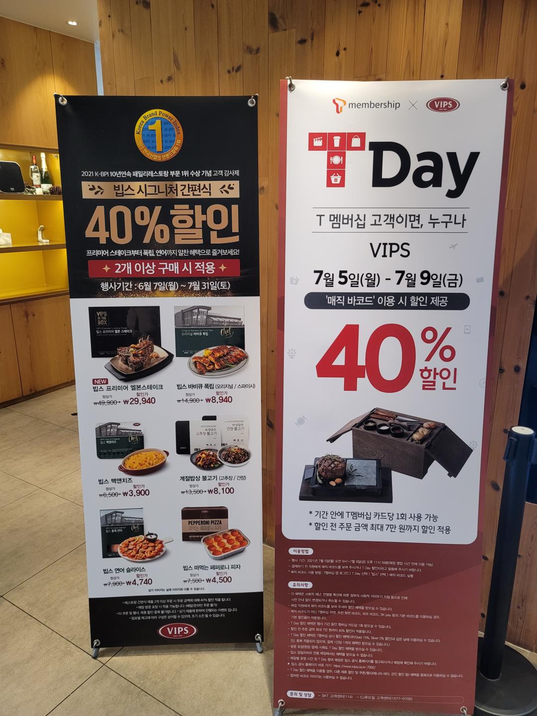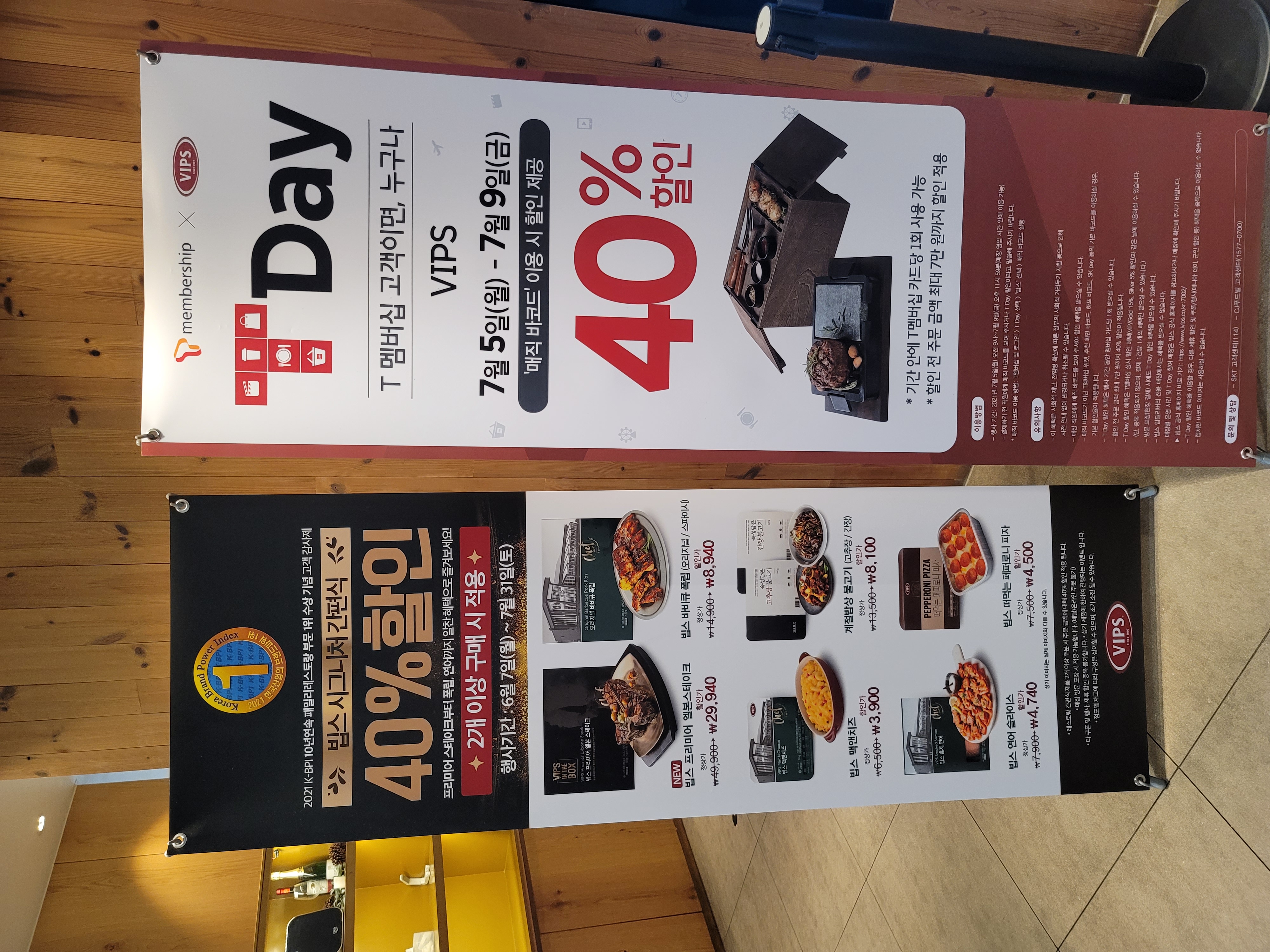 어제부터 금요일까지 티 멤버쉽 회원에 한하여 빕스에서 식사를 하면 40% 할인을 해준다고 하네요~(단, 전체 적용이 아니라 메뉴중 비싼거 한가지만 적용되고 최대 7만원까지 할인적용이 됨.)
