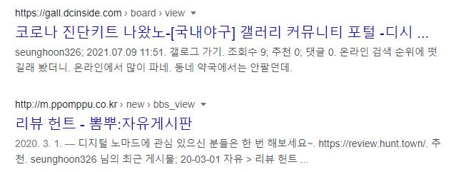코로나 자가진단키트 검색어 떳던데요? > 자유게시판