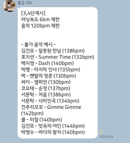 거리두기 4단계가 되면서 헬스장에서 러닝속도 6km, 음악 120bpm으로 제한되고