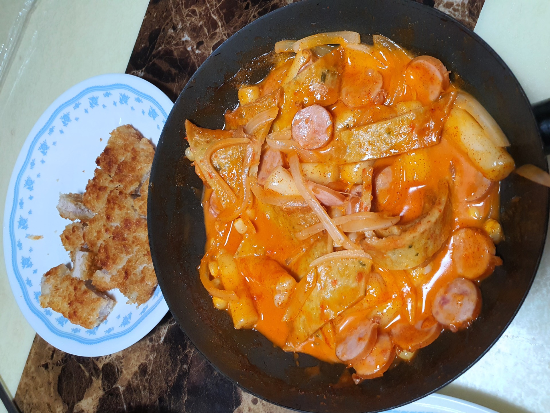 점심 뭐줄까 하다가 돈가스랑 로제떡볶이 했네요..