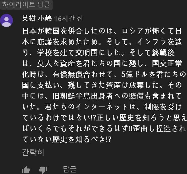 일본이 한국을 병합한 것은 러시아가 무서워 일본에 비호(庇護; 감싸서 막고 보호해줌)를 요청했기 때문이다.