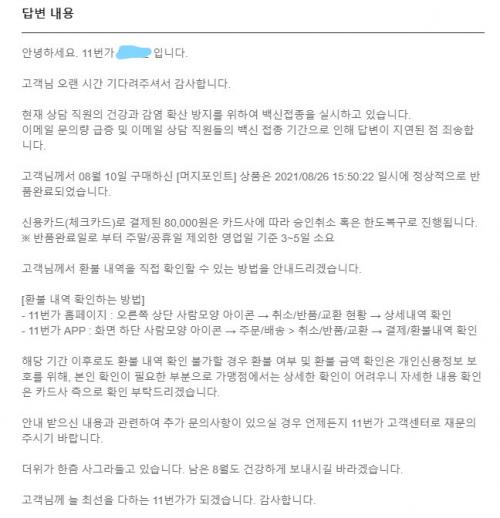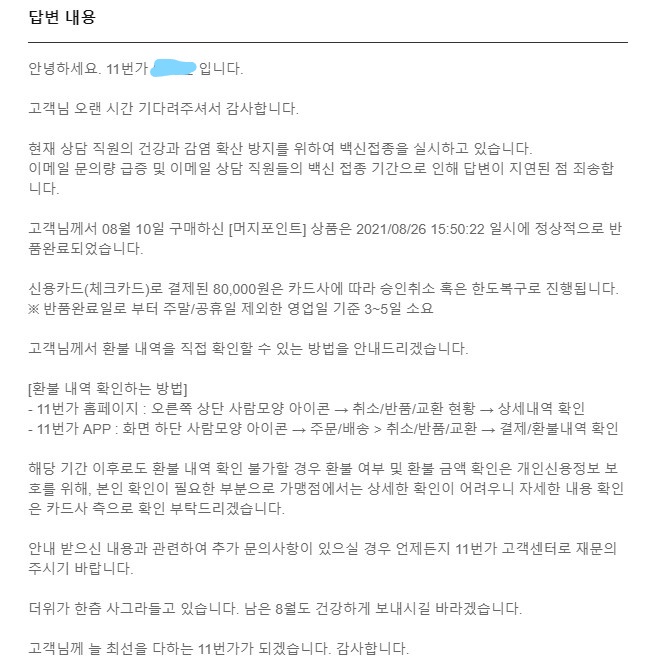 머지본사에 환불 신청 안하고 기다리다가 바로 11번가로 신청했습니다.
