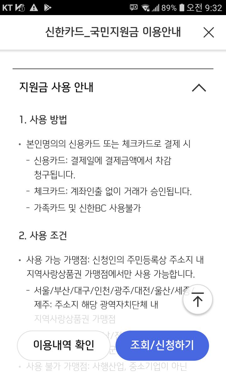 예전 처럼 신한 체크카드를 재난지원금 사용 가능한 매장에서 결제하면