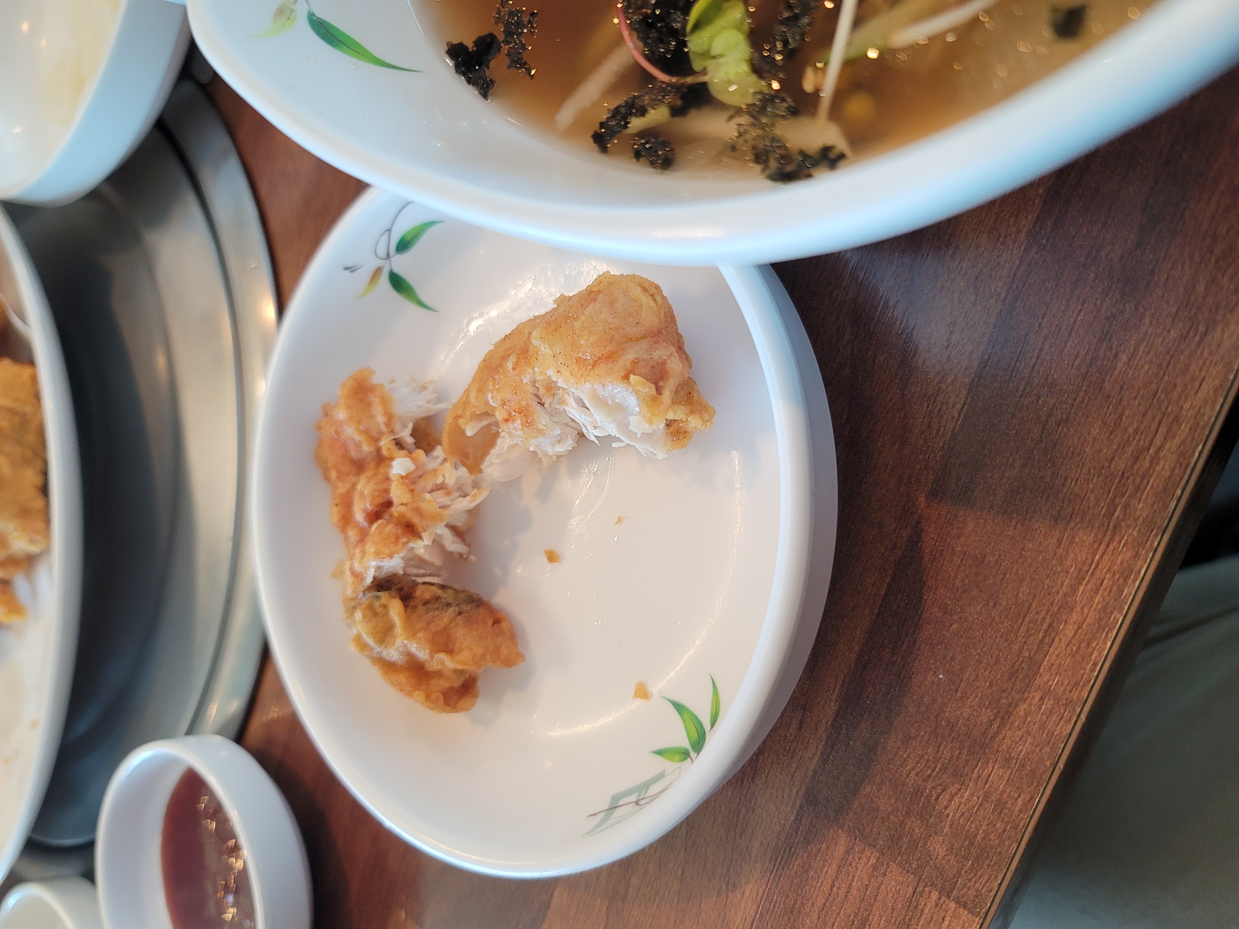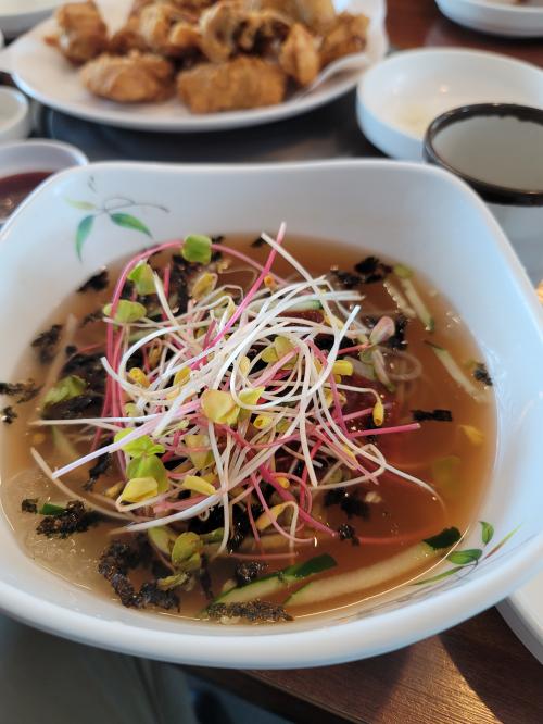 끝나고 나오니 11시다 다 되어서 집으로 가는길에 점심을 먹었는데 동생이 몇년전에 TV에 나온 맛집이 있다고 해서 20분을 이동해서 먹었는데 메밀막국수에 메밀치킨을 팔더군요. 그래서 물막국수 4그릇에 치킨 1마리 시켜서 먹는데 치킨을 방금 튀긴거 먹는거라 맛있게 먹었고 물막국수도 국물이 새콤하고 시원해서 좋았어요~