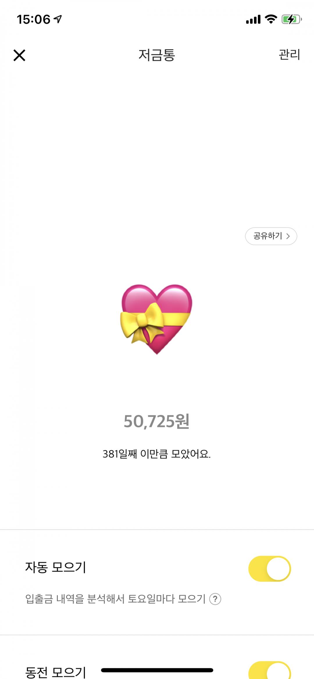 저금통 모으는 재미가 쏠쏠하죠? 자동모으기 하니 금방 쌓여서