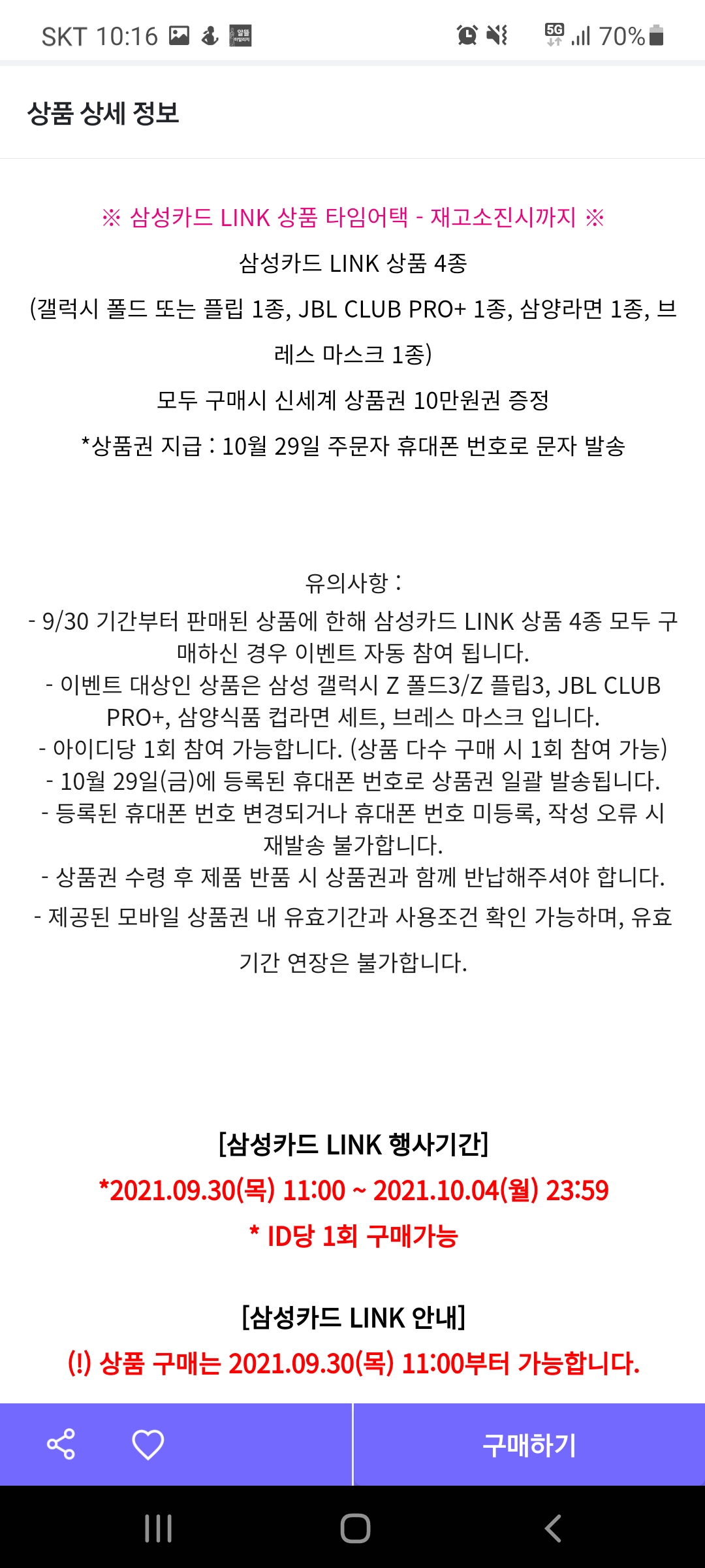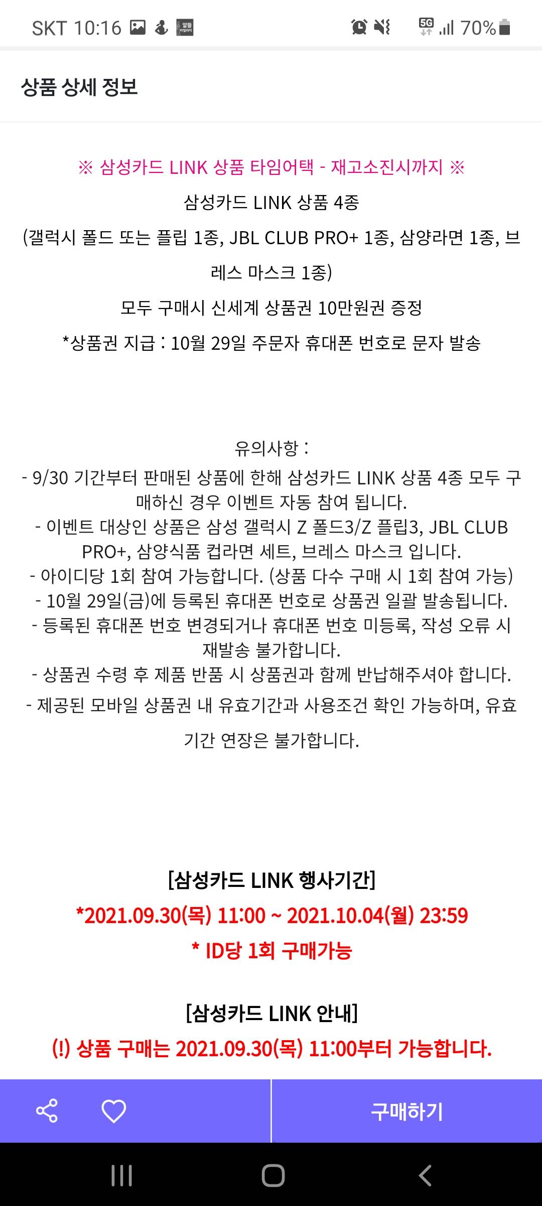 갤럭시폴드나 플립, JBL, 삼양라면, 마스크 모두 구입시 상품권 주네요 |