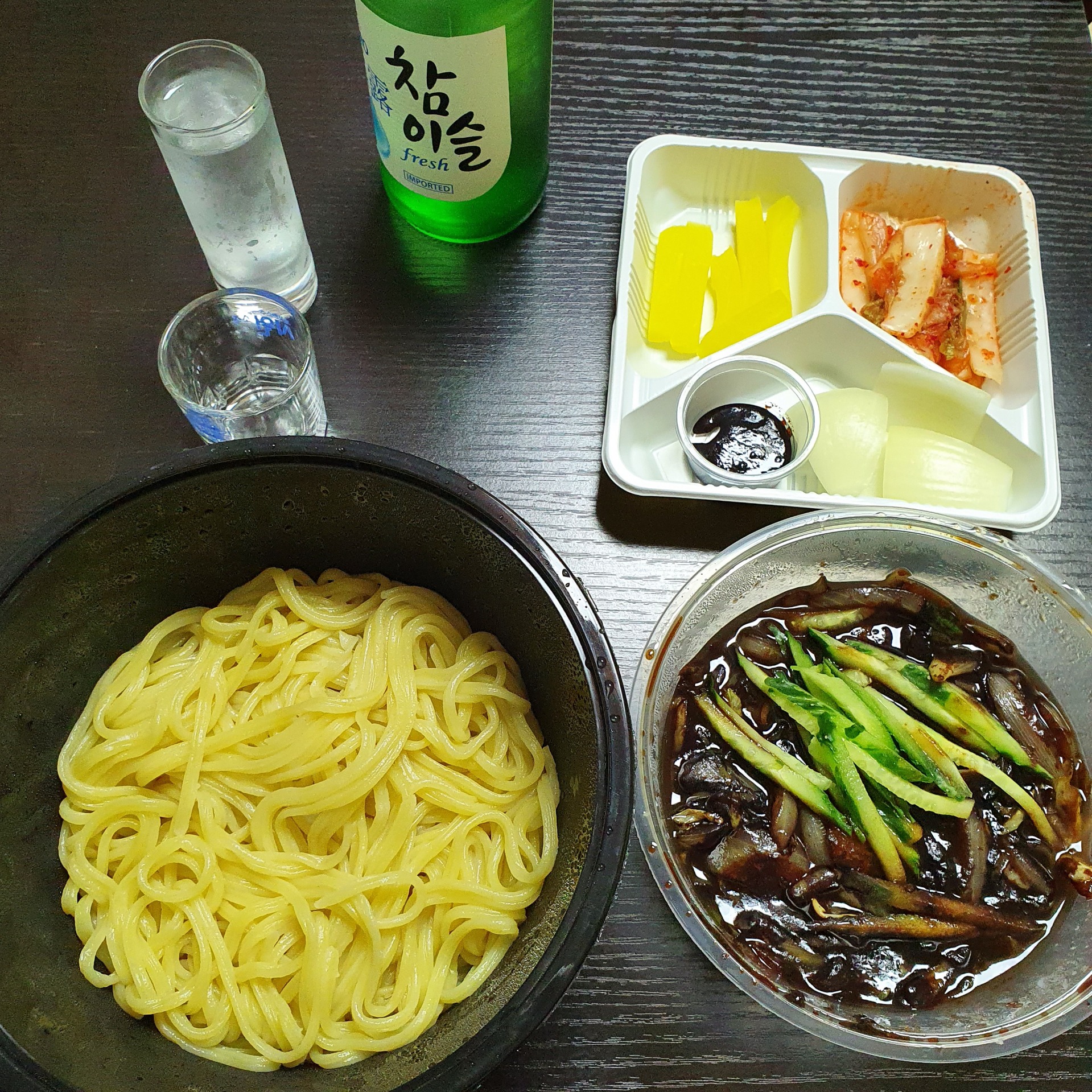 빠이주랑 소주랑 간짜장을 안주삼아 마시고 있습니다.